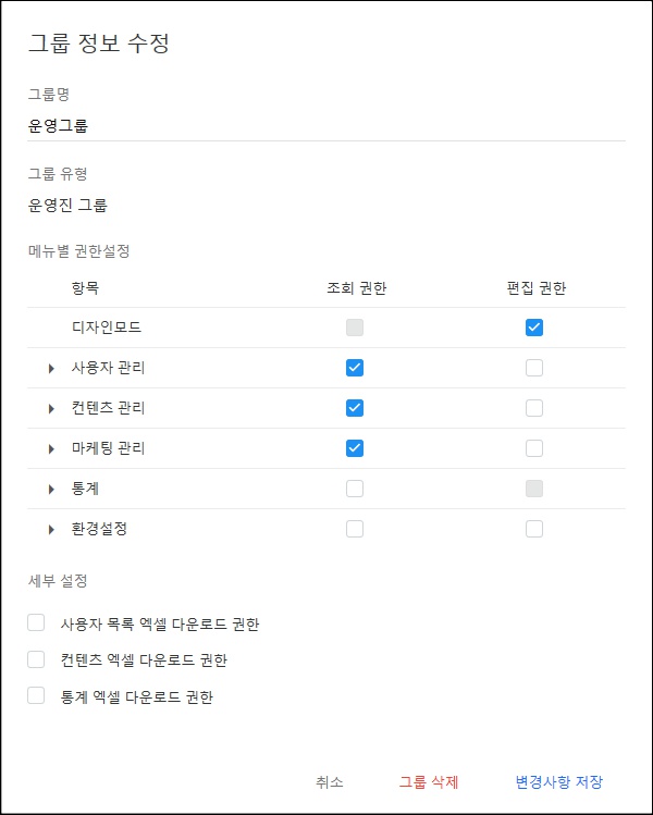 새로운 그룹을 만들거나 기존의 그룹을 운영진 그룹으로 설정을 맞춥니다.