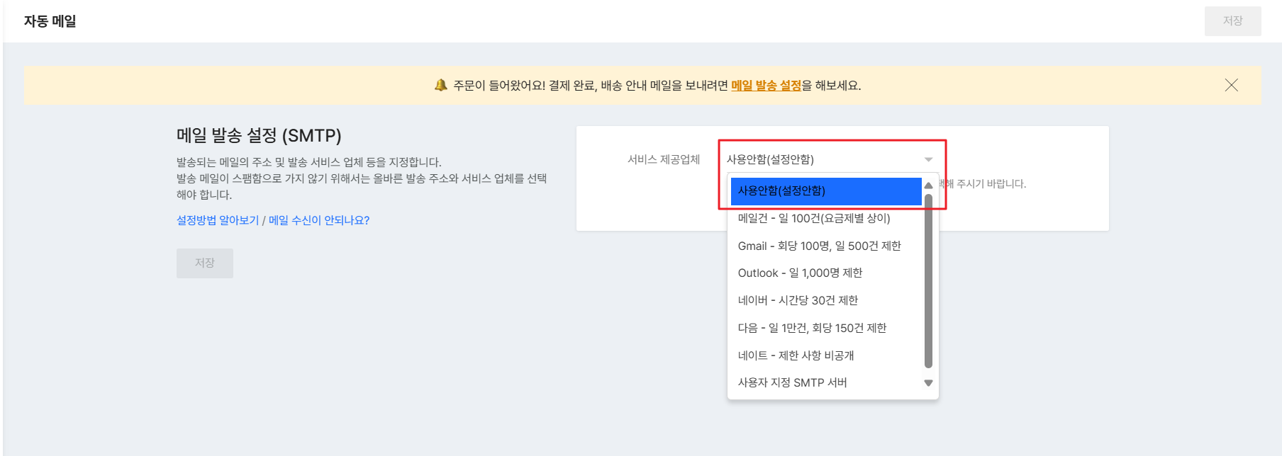 모든 메일 발송 설정을 완료했다면 저장 버튼을 클릭해 적용합니다.